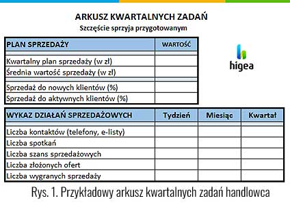 Na rysunku 1 pokazałem, jak może wyglądać przykładowy arkusz z planem sprzedaży i wykazem działań sprzedażowych dla każdego handlowca.
