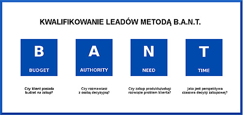 Jedną z metod kwalifikowania leadów jest metoda B.A.N.T. składająca się z następujących kryteriów: