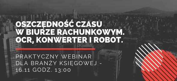 Aby ułatwić biurom rachunkowym wybór najodpowiedniejszych narzędzi automatyzacji, zapraszamy na bezpłatne szkolenie online organizowane przez specjalistów z zakresu digitalizacji i robotyzacji. Już 16 listopada o godz. 13:00 najistotniejsze informacje na temat automatyzacji biura rachunkowego w pigułce. Rejestracja i udział dla przedstawicieli biur rachunkowych i firm księgowych bezpłatna. Liczba miejsc ograniczona.