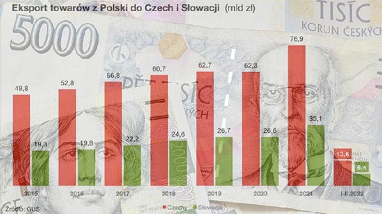 Czechy od dawna utrzymują drugą pozycję, po Niemczech, wśród partnerów eksportowych Polski. Tylko w okresie styczeń-luty 2022 r. wartość sprzedaży towarów z Polski do Czech sięgnęła ponad 13 mld zł. To prawie o jedną czwartą więcej niż w tym samym okresie ubiegłego roku, pomimo że już w 2021 r. eksport do tego kraju wystrzelił o ponad 23 proc.