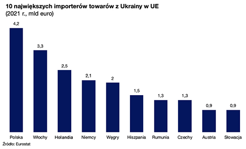 Spadek ukraińskiego PKB o 35 proc. w 2022 r. (szacunkowe dane Międzynarodowego Funduszu Walutowego) w wyniku wojny nie oznacza, że ukraiński biznes przestał funkcjonować. Tamtejsi przedsiębiorcy intensywnie szukają możliwości, by sprzedawać towary za granicę, upatrując największej szansy właśnie w Polsce i dalszym reeksporcie. Choć warto przypomnieć, że już przed wybuchem wojny Polska była największym wśród państw unijnych importerem towarów z Ukrainy (Eurostat, 2021).
