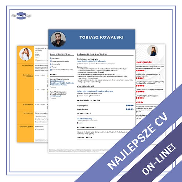 Wiele osób zastanawia się, czy lepiej stworzyć wyróżniające się CV, czy postawić na minimalistyczny szablon. Wzór CV najlepiej dopasować do oferty pracy, na którą aplikujesz. Kreator CV od Ciekawego CV posiada zarówno klasyczne, proste szablony (dla księgowego, prawnika, nauczyciela), jak i bardziej kreatywne (dla managera, specjalisty ds. marketingu, grafika). Dzięki temu bez problemu wybierzesz ten pasujący do Twojej branży.