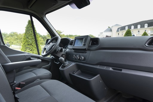 Wnętrze Mastera jest stworzone do pracy. Jest wygodnie, ergonomicznie i praktycznie, jak w Traficu. W kabinie zmieściły się trzy wygodne siedzenia - oddzielony fotel kierowcy oraz kanapa z wydzielonymi dwoma siedzeniami. Nie brakuje systemów wspomagających kierowców i ułatwiających jazdę, jak kamera widoku wstecznego, tempomat.