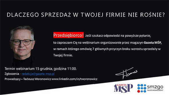 Szanowny przedsiębiorco, jak widzisz brak wzrostu sprzedaży w Twojej firmie, może być pochodną wielu czynników. Oceń, który z opisanych czynników najbardziej hamuje ten wzrost, a następnie skontaktuj się ze mną. W ramach darmowych 45 min wideo konsultacji podpowiem Ci, jak sobie z nim poradzić.