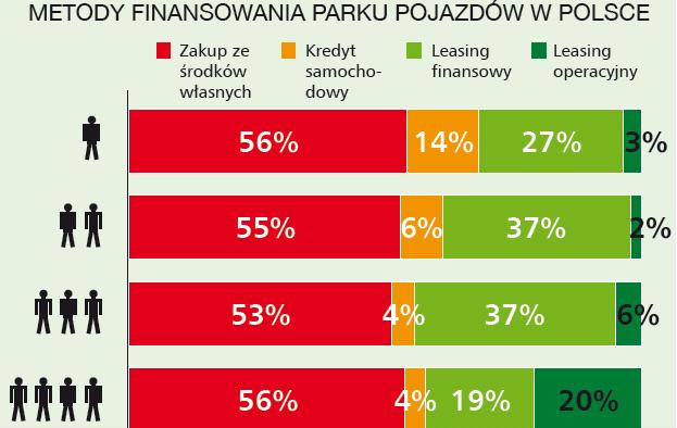 Jednocześnie o wiele mniej popularne są u nas bardziej wyrafinowane i nowoczesne metody finansowania tego zakupu – leasing finansowy i operacyjny (czyli tzw. Wynajem długoterminowy). Zwłaszcza ten ostatni jest dla polskich małych i średnich przedsiębiorstw instrumentem zupełnie marginalnym. Odsetek firm korzystających z tego instrumentu odbiega tu w istotny sposób od średniej europejskiej, która dla przedsiębiorstw mikro (do 10 pracowników) wynosi 7 proc., dla przedsiębiorstw małych (10-99 pracowników) 15 proc., a dla przedsiębiorstw średnich (100-499 pracowników) aż 35 proc.