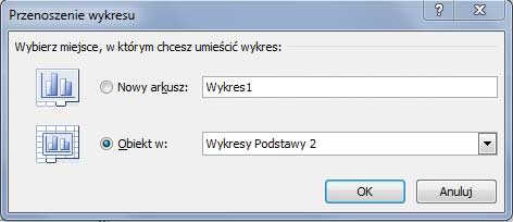 Wykres może być widoczny w arkuszu jako obiekt oraz jako element nowego arkusza.