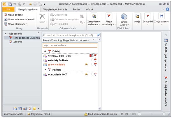 W gąszczu wiadomości e-mail oraz spotkań każdy dodatkowo ma jakieś zadania do wykonania. Outlook pozwala również na tworzenie zadań i zarządzanie nimi. Jest to tak istotne, że w Outlook zawiera osobny moduł, który służy tylko do pracy z zadaniami.