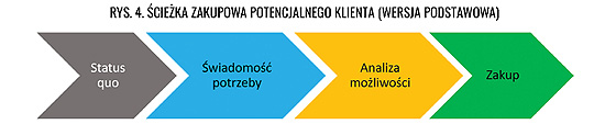 To, jak bardzo jest skomplikowana ścieżka zakupowa potencjalnego klienta, zależy od wielu czynników: specyfikacji produktu czy usługi, ceny, typu klienta, zasobności jego portfela czy też stopnia pilności potrzeby. Schemat prostej ścieżki zakupowej pokazałem na rysunku 4.