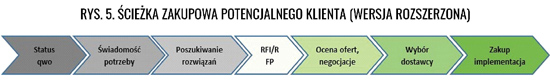 Gdy potencjalny klient planuje zakup drogich lub złożonych produktów albo skomplikowanych usług, jego ścieżka zakupowa jest dużo bardziej złożona i najczęściej składa się z 7 etapów (rys. 5.).